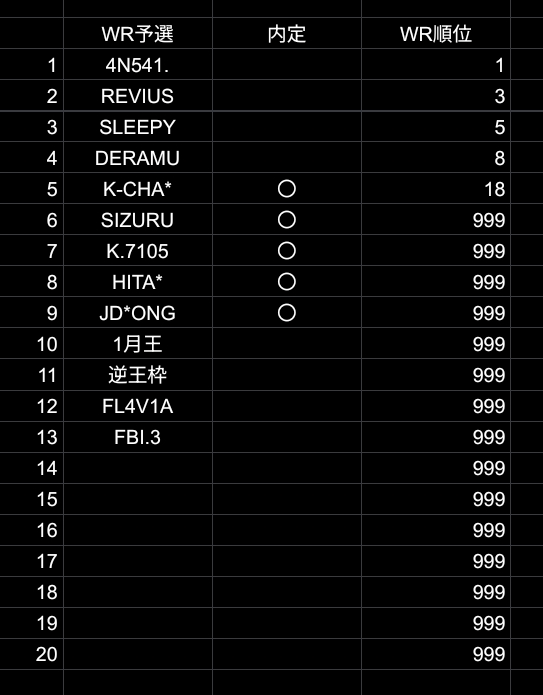 2月の通常回の枠が少し残っていたのでWRで予選をすることにしました!