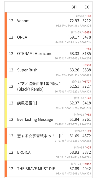 トラウマ曲を久々にやったら歴代自己べが出て嬉しい!